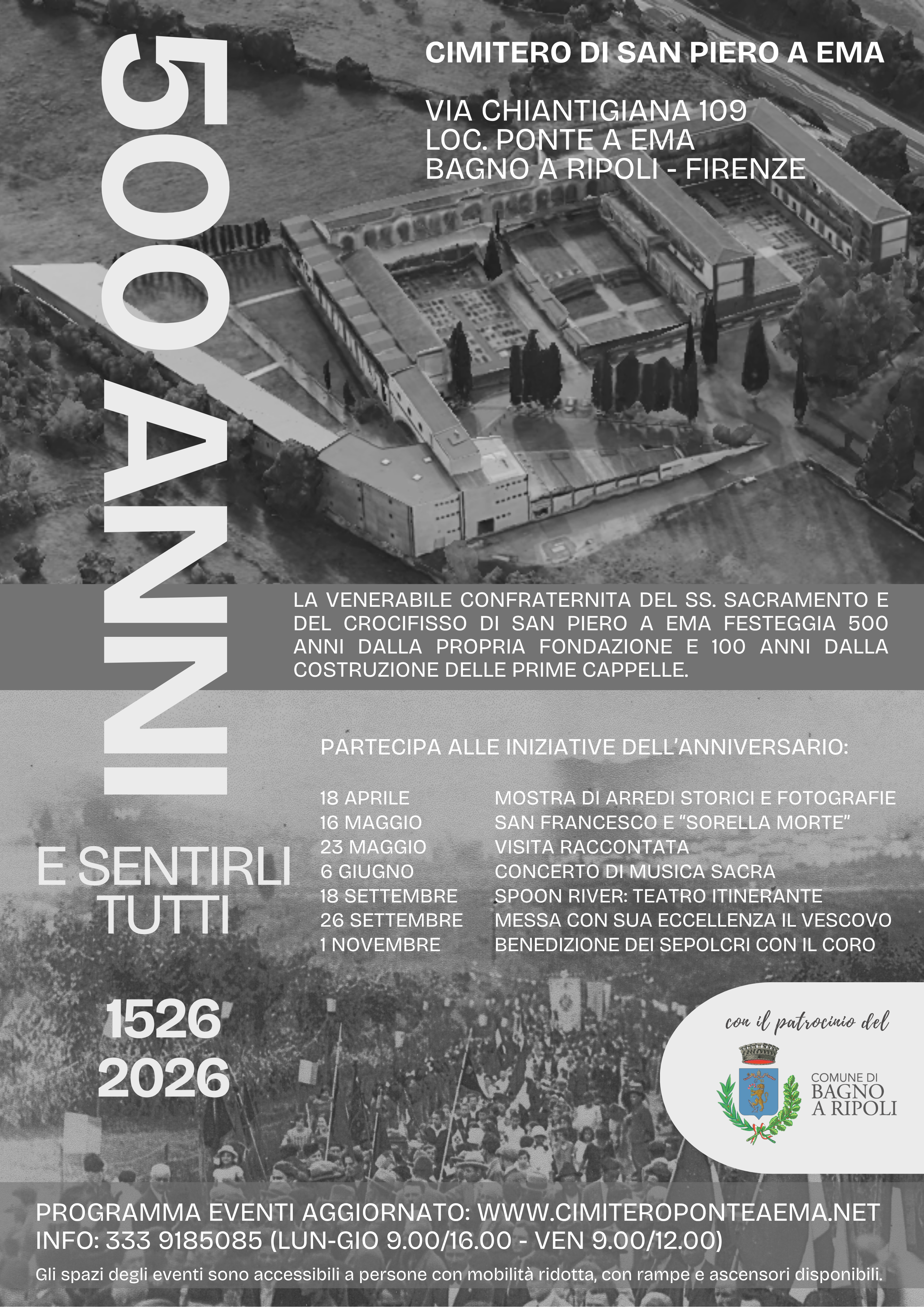“500 anni e sentirli tutti”: tra musica, teatro itinerante e visite raccontate, tante iniziative per l’anniversario della Confraternita di San Piero a Ema (e i primi 100 anni del cimitero)