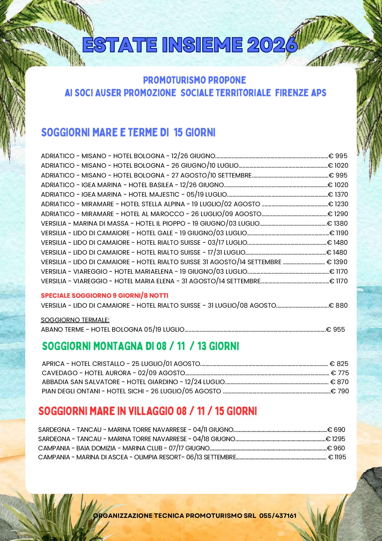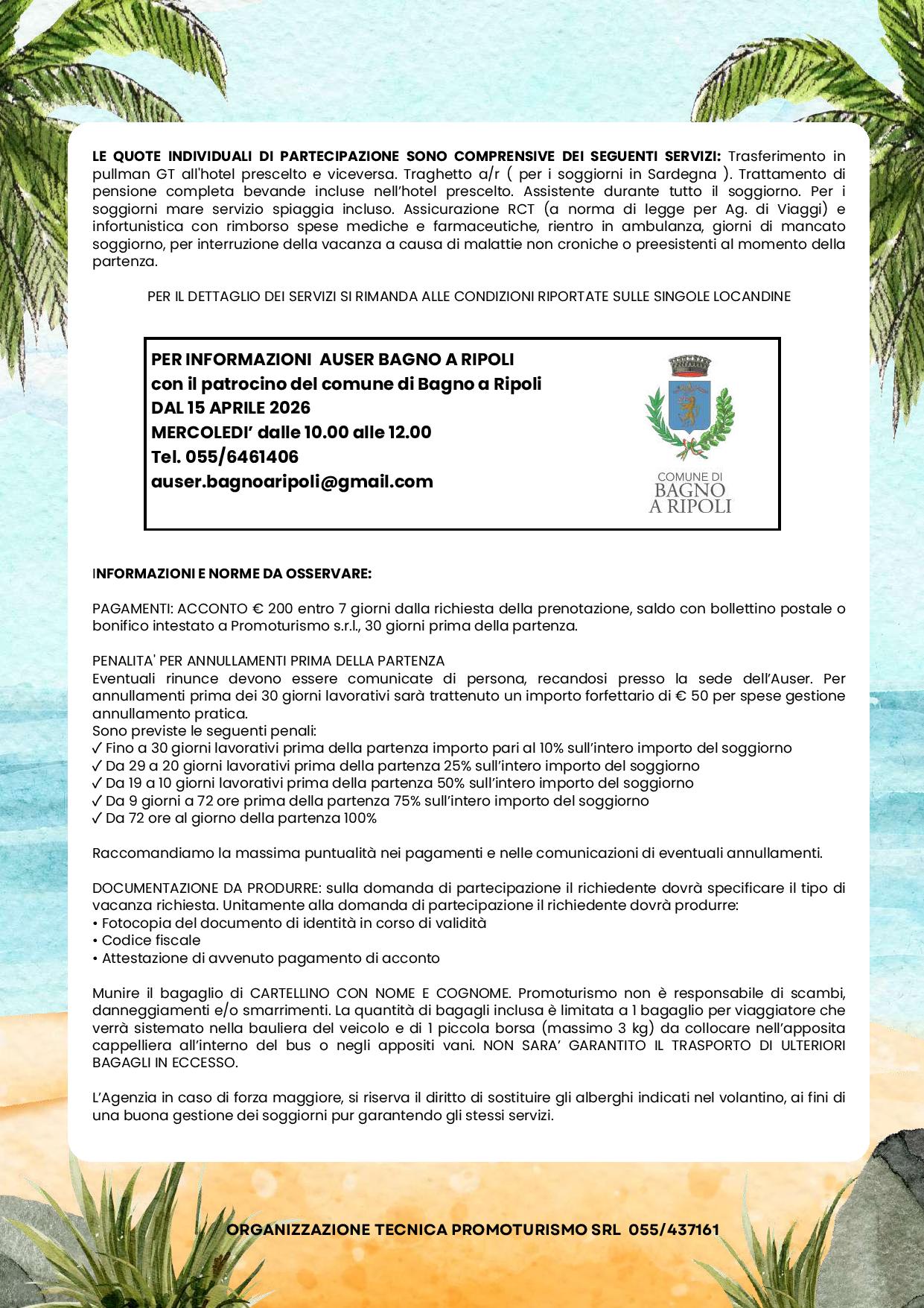Da giugno, un ricco calendario di soggiorni per la "terza età" organizzati da Auser Bagno a Ripoli. Via alle iscrizioni