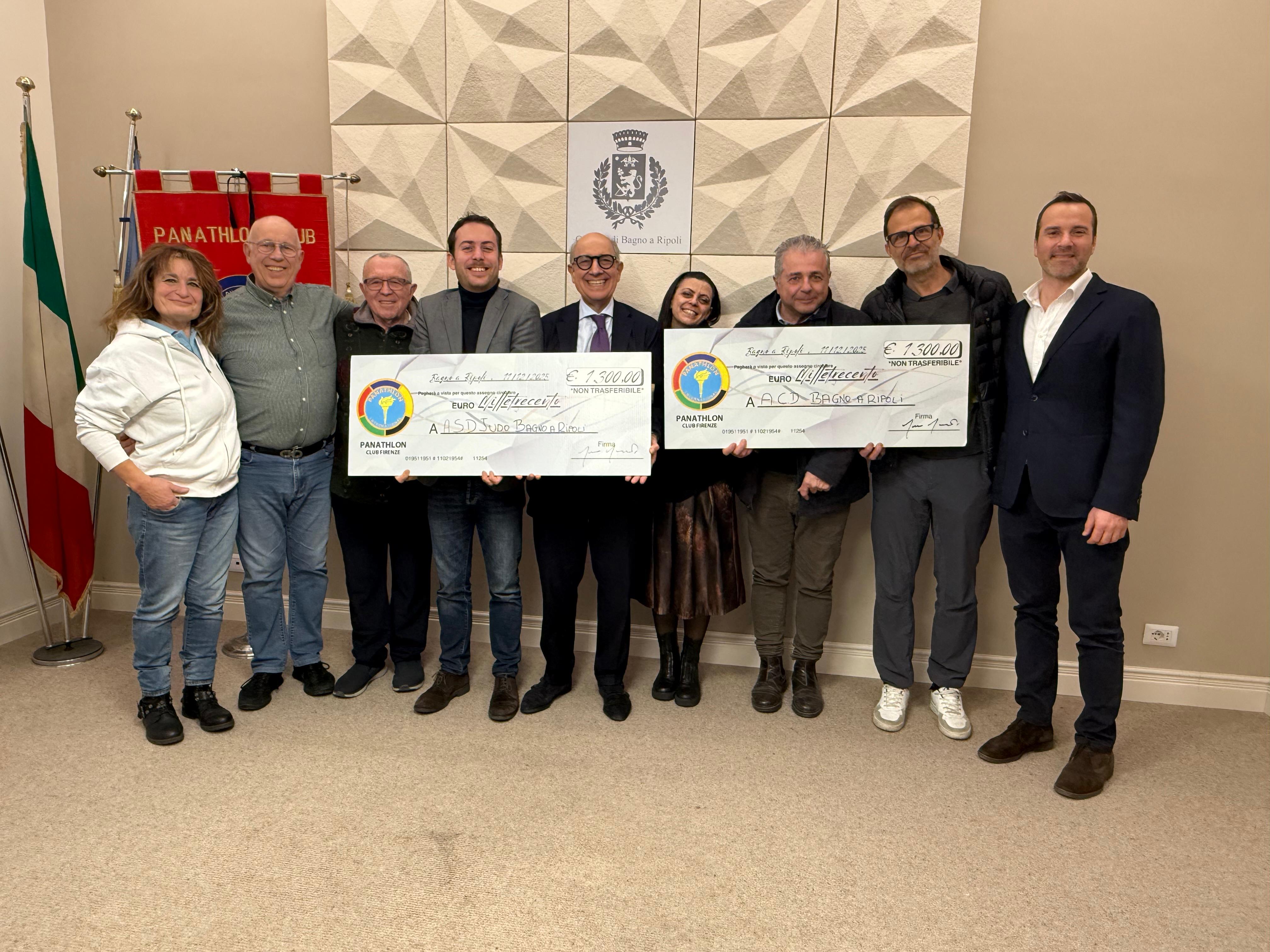 Nei giorni scorsi, alla presenza del sindaco Francesco Pignotti e dell’assessore allo Sport Francesco Conti, il presidente Maurizio Mancianti e la segretaria di Panathlon Club Firenze Noemi Salvati hanno consegnato gli assegni al presidente dell’ACD Bagno a Ripoli, Agostino Ognibene, e al presidente dell’ASD Judo Bagno a Ripoli, Gianni Volpi.