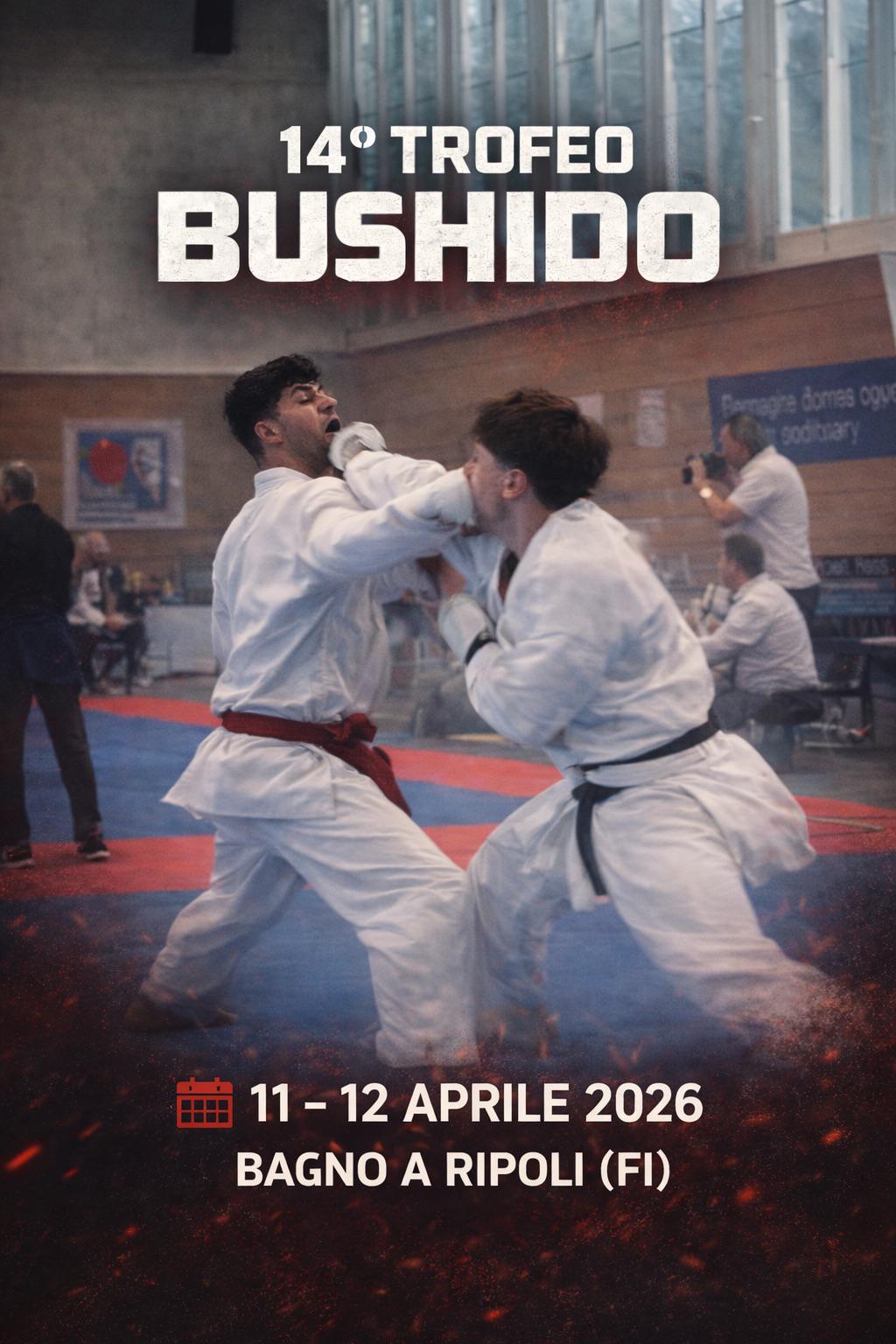 Bushido Karate Firenze organizza per sabato 11 e domenica 12 aprile il 14° Trofeo Bushido. Appuntamento alla palestra della scuola media "Francesco Granacci" di Bagno a Ripoli. Le gare di sabato 11 aprile avranno inizio alle ore 14.30 e termineranno alle ore 19.30. Domenica 12 aprile avranno inizio alle ore 9.00 e termineranno alle 13.00. L’evento è patrocinato dal Comune di Bagno a Ripoli.