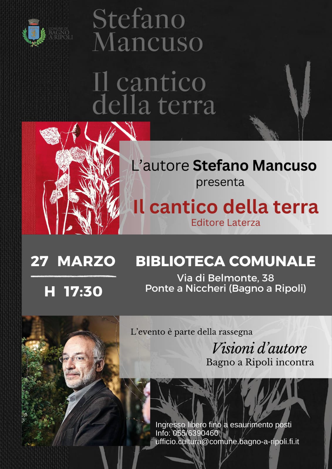 “E’ davvero un onore e un piacere ospitare con ‘Visioni d’autore’ il professor Mancuso, nostro concittadino e punto di riferimento a livello internazionale in ambito scientifico. Con il suo nuovo libro – dichiara il sindaco Francesco Pignotti – ci ricorda come la cura della natura debba essere per tutti una priorità. Un obiettivo che insieme al professore perseguiremo anche con altri importanti progetti sul nostro territorio”.